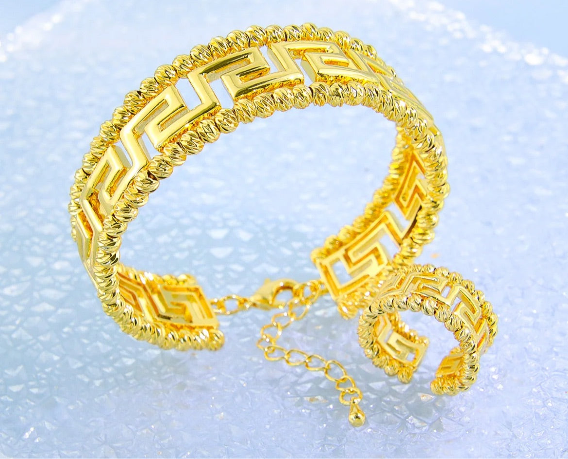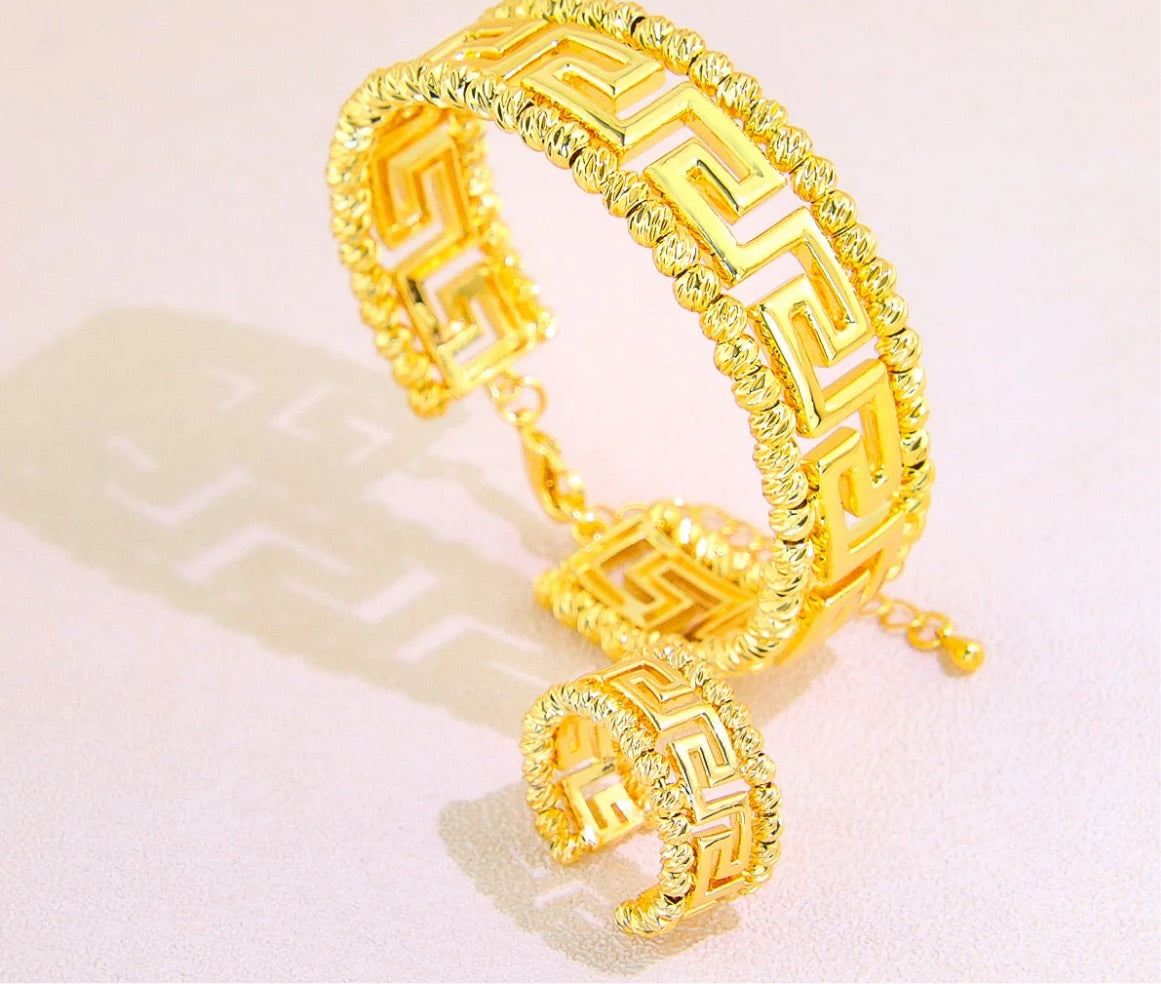 En uppsättning av två delar, fri storlek, pläterad med 21 guldvatten. Parfymer bör undvikas, så att färgen håller en längre tid